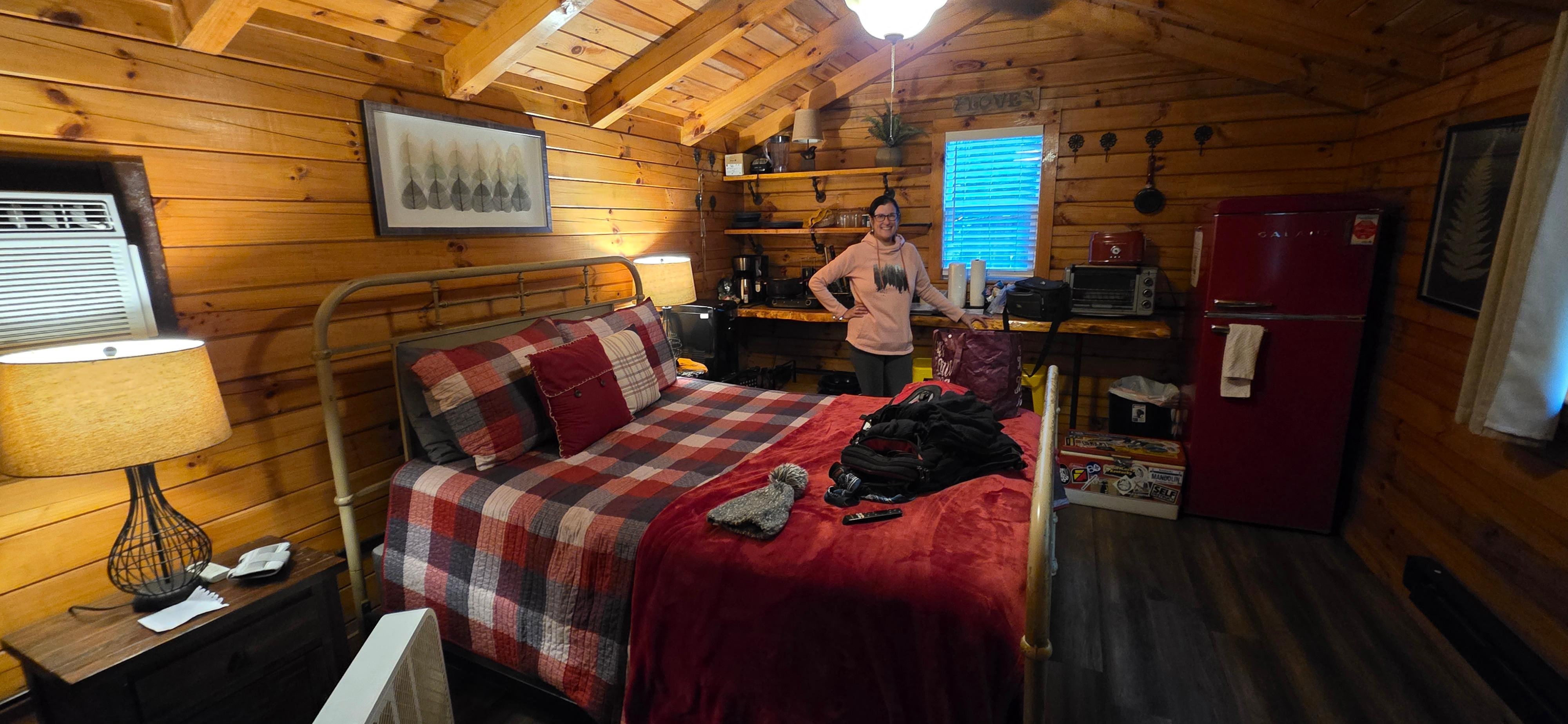 - Sleeping Arrangements: Queen Bed | Tent Camping Area for up to 3 person tent (Tent not provided)