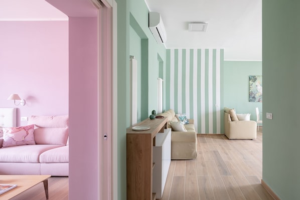 Charming new (May 2023) apt near the Vatican with view over S. Peter church, 6h floor, elevator, consisting of two large bedrooms with balcony: one with a double and a single bed and one with a double bed and a double pull out sofabed, one signle bedroom, two large bathrooms both with shower cabin, living room with kitchenette, equipped with all accessories for cooking, dining table, cable TV, two sofas, AC in the living room and in the two master bedrooms, washer, USB sockets, blueetooth speakers to listen music in the bathrooms, LED lights, 5 min walking to S. Peter square and to Rome S. Pietro Station.