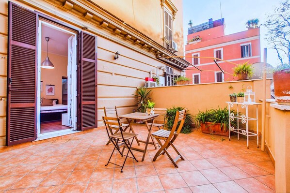 L'appartamento offre una fantastica terrazza privata con affaccio sulle mura aureliane.