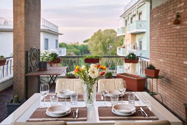 - You fall in love with our luxurious 35 sqm terrace designated as a recreational area to experience a Roman lifestyle like in the movies or organize sunset dinners and lunches.