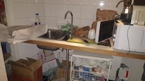 Breakfast in a garbage closet