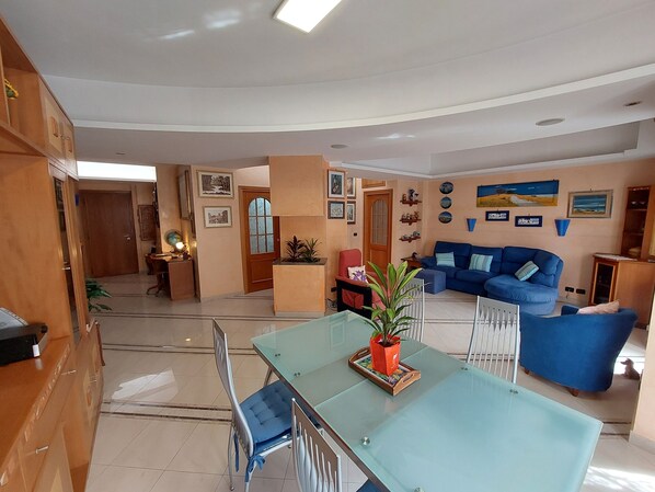 A splendid accommodation with 6 beds (a double bedroom, a bedroom with two single beds, a bedroom with a single bed, a queen size sofa bed in the living room) as well as a kitchen and two bathrooms both with windows (one very large master bedroom) large with shower and one in the room without shower). The apartment is composed of:
