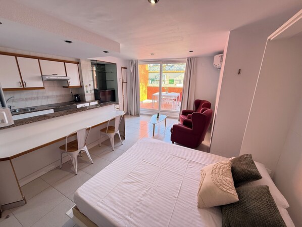Comfortable apartment with capacity for 2 people. It is located in the urban center of Roses. Nearby there are all kinds of shops and restaurants where you can enjoy the best fresh fish and seafood from the Roses Bay. The sandy beach is just at 30 meters and it's one with the most crystalline waters of the Girona Coast. Ideal to enjoy in couple of the multiple possibilities that offers la Costa Brava.