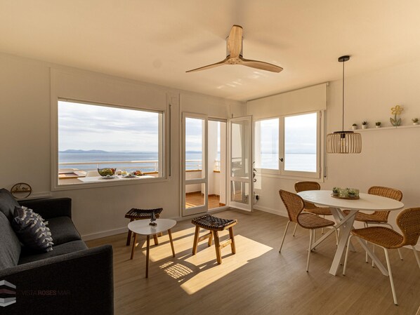 Vista Roses Mar - Ariadna: Charming apartment with panoramic sea views and a shared swimming pool The Ariadna Apartment is the perfect choice for those seeking comfort and a prime location in Roses. Thistwo-bedroom accommodation is located next to the coastal path, with direct access from the building itself. This trail is ideal for a pleasant walk of700 meters to Canyelles Beach. Additionally, the center of Roses is just 2 km away, making it easy to explore everything this charming town has to offer. The apartment features a fully equipped kitchen, including a Dolce Gusto coffee machine, oven, microwave, toaster, and kitchen utensils. All rooms are equipped with fans, ensuring a cool atmosphere during the warmest days. The accommodation is located on thefourth floor, allowing you to enjoyspectacular sea views from its private terrace. Additionally, guests can access ashared swimming pool, open from June to September, perfect for cooling off during the summer. Extras for families traveling with children: We provide a crib, high chair, and baby bathtub upon prior request to ensure the whole family feels at home. Additional information: * Private parking space available. * Late check-in: For arrivals after 9:00 PM, a supplement of €25 will be applied. * Bed linen and towels: Included (no change service during the stay). * Tourist tax: 1€/person per night supplement applies, to be paid before arrival. The Vista Roses Mar - Ariadna offers you the opportunity to enjoy a unique vacation on the Costa Brava. We will be delighted to welcome you and ensure your stay is unforgettable!