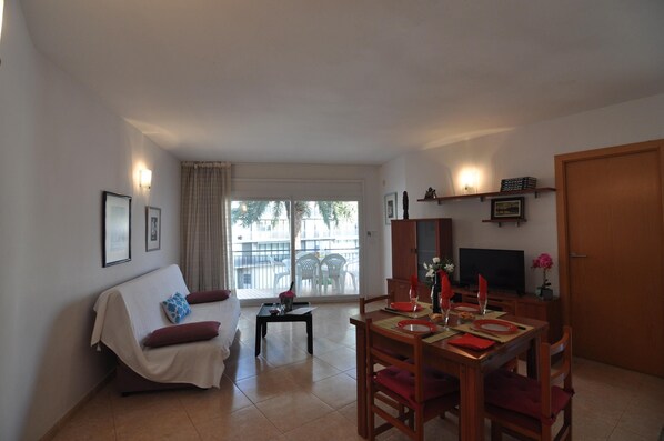 Welcome to our charming apartment for rent in Roses, Costa Brava! Located just 300 meters from the beautiful Santa Margarita beach, this cozy apartment is ideal for those looking to enjoy a relaxing vacation near the sea. South-east orientation.The apartment in Roses (Costa Brava) has 2 bedrooms and has capacity for 6 people. The apartment is homely, has new furniture, and is 65 m². The accommodation is equipped with the following items: lift, garden furniture, 12 m² terrace, iron, air conditioning, internet (Wi-Fi), open-air parking the same building, 1 TV, tv satellite (Languages: Spanish, German, Dutch, French), radio.In the vitroceramic independent kitchen, refrigerator, microwave, oven, freezer, washing machine, dishes/cutlery, kitchen utensils, coffee machine and toaster are provided.The apartment is located in an ideal area for families, within an urbanization.In the case of a group of young people, please consult conditions.The apartment is located at:- 50 m from the Nou Aquarium restaurant- 300 m from the sandy beach Platja Santa Margarida- 300 m from the Spar supermarket- 2 km from the city of Roses- 2 km from the Aquabrava water park- 3 km from the Aiguamolls natural park- 3 km from the Roses bus station- 10 km from Cala Montjoi rocky beach- 17 km from the Peralada golf course- 20 km from Figueres train station- 60 km from Girona airport