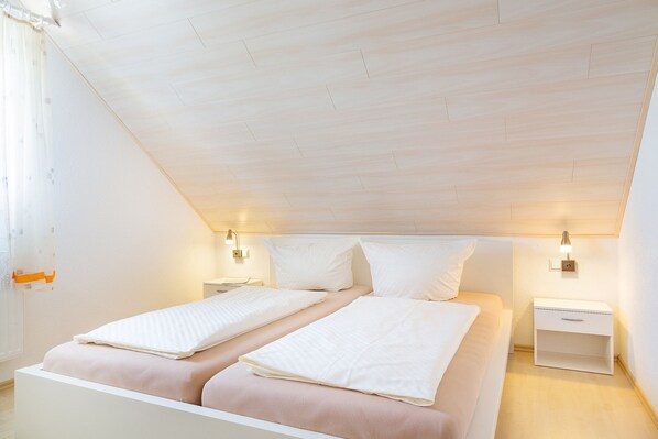 L'appartamento al piano superiore è di 45 mq e può ospitare fino a 6 persone. L'appartamento dispone di 2 camere da letto separate - una camera con letto matrimoniale e un'altra camera con 2 letti a castello, un soggiorno aperto e zona pranzo con TV satellitare e angolo cottura, balcone e doccia / WC. È prevista una tassa di soggiorno pari a 1,00 EUR a persona al giorno. I bambini da 0-11 anni non pagano la tassa di soggiorno.