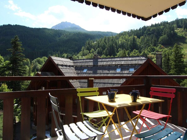 MONOLOCALE MONOLOCALE di 25 m² per 4 persone, situato al 1 ° piano (con ascensore) della recente residenza di Clos, con accesso alle piste. Il balcone è esposto a sud, attrezzato con un tavolo e 2 sedie. Comprende: - alcova con 2 letti a castello, separata dal soggiorno da una porta vetrata con tenda. - soggiorno con divano letto per 2 persone, televisore, aspirapolvere, ferro da stiro. - angolo cottura con 4 fornelli, forno, microonde, frigorifero, lavastoviglie, macchina da caffè, tostapane, bollitore, raclette e set per fonduta ... - bagno con vasca e tenda da doccia; - WC separato I NOSTRI AMICI ANIMALI NON SONO AMMESSI I letti sono dotati di piumoni (cuscini quadrati) Lenzuola e asciugamani non sono forniti. La pulizia di fine soggiorno è a carico dell'inquilino. Il Wi-Fi è un costo aggiuntivo I letti a castello superiori non sono ammessi per i bambini sotto i 6 anni. Possibilità di affittare un garage chiuso nella residenza in supplemento