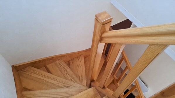 Upstairs, a fourth bedroom with two single beds (80 cm) and a small washroom provides a more private space, ideal for children or teenagers.