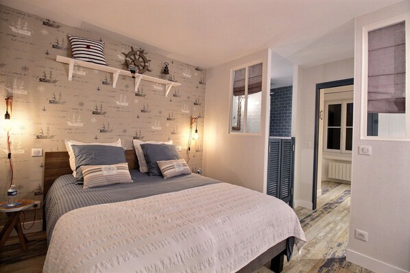 Welcome to the Cabine De La Baie, an old fisherman's cottage that has been completely renovated to offer you a comfortable and authentic setting. Nestling in Saint-Pair-sur-Mer, just 200 m from the beach, our Cabin is a real invitation to relax and get away from it all, with its resolutely nautical decor tinged with blue, white and beige, it exudes the charm of seaside holidays.