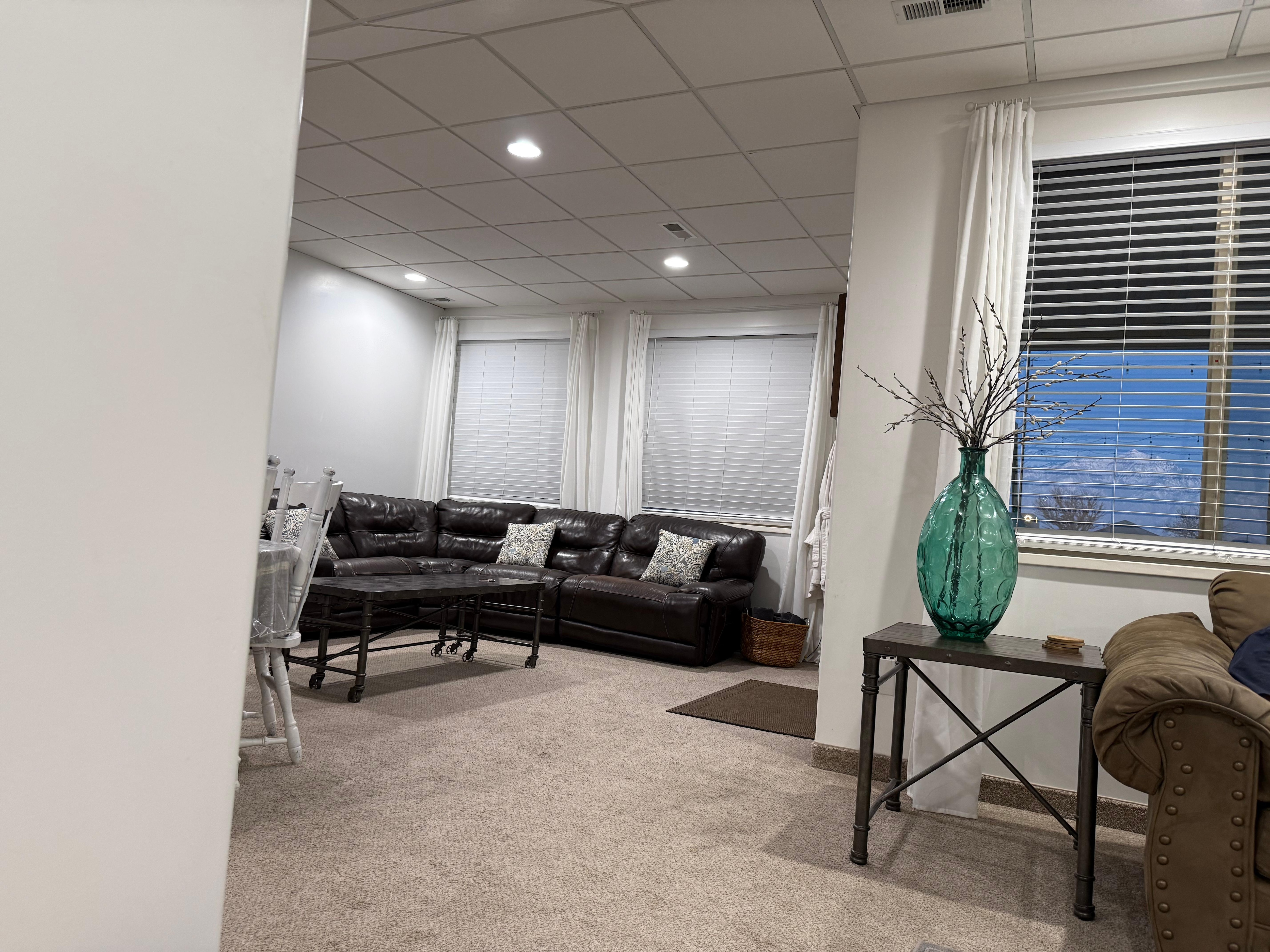 The house is a beautiful, lower-level duplex walk out basement. It has one of the best views in the area with its stunning panoramic views. It is very private. The guests enter at the back of the property and have an entire beautiful 1/2 acre to themselves while the owners enter up front and have their own separate 1/2 acre. We seldom cross paths except for some yard maintenance. The extra-large windows help you enjoy the fantastic view. Grab a cup of coffee or tea and watch your cares melt away as you absorb the wonderful mountain view. Mountain View Golf Course sits behind the house, which leaves the view wide open to enjoy the perfect view of the breathtaking Wasatch mountains.
