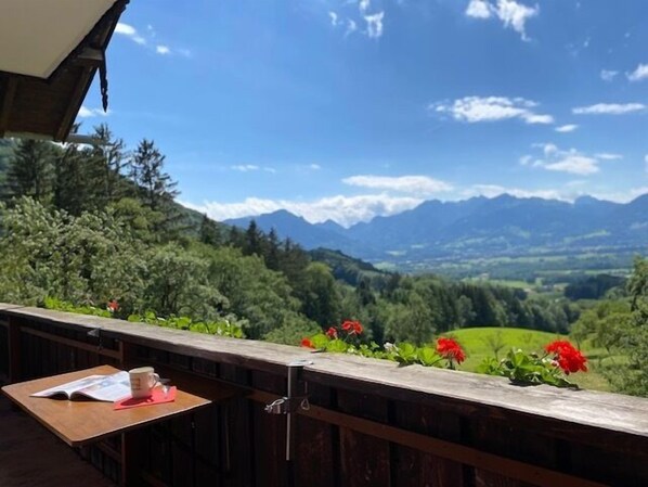 der Panoramablick vom Balkon in die Natur und auf die Berge ist zu jeder Tageszeit atemberaubend und lässt jeglichen Stress vergessen…einfach raustreten, schauen, atmen und zur Ruhe kommen