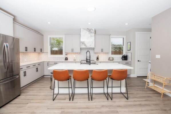 This gorgeous home offers an ideal base for an unforgettable San Antonio visit. The open-concept living area is where you'll create the most memorable moments with your loved ones. Cuddle up on the sofa and watch a movie, discuss your adventures, or prepare delicious bites in the fully equipped kitchen.