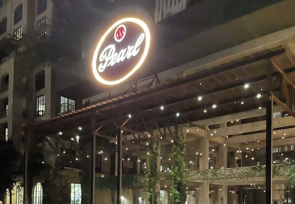 In an "up and coming" neighborhood that is being revitalized, with some sketchy areas but on a nicer street. Wish we had known about limited access due to all the construction as we had to figure out how to get there, at night, in a neighborhood that wasn't great.