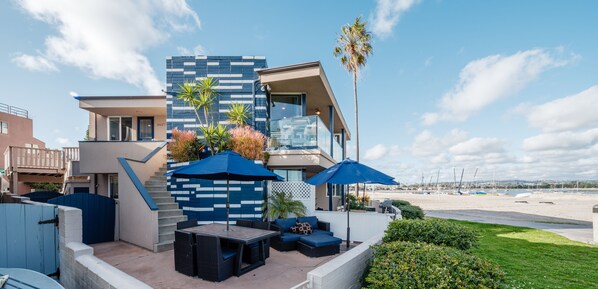 This house is adorable! We really enjoyed the Bay side and location. The airplane noise was a surprise to us - 100% of the planes that take off from the San Diego airport fly directly over this house. If you are OK with Airplane Noise it won't bother you. We loved the sea breeze, the view of the bay, watching the snorklers/divers and the overall beach entertainment. Lots of seating for meals and great for walking the beach with dogs.