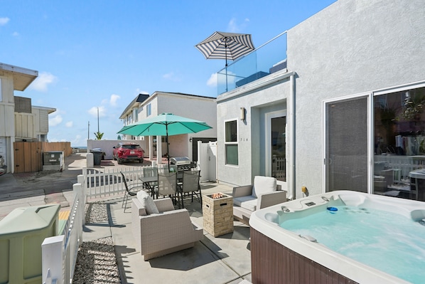 Welcome to your dream beach retreat in Mission Beach! This inviting lower-level home offers the ultimate combination of relaxation and location. The real showstopper? Your private patio oasis—complete with a bubbling hot tub, loungers, BBQ, and dining area. Whether you're catching the sunset or unwinding after a day in the waves, it's the perfect place to kick back.