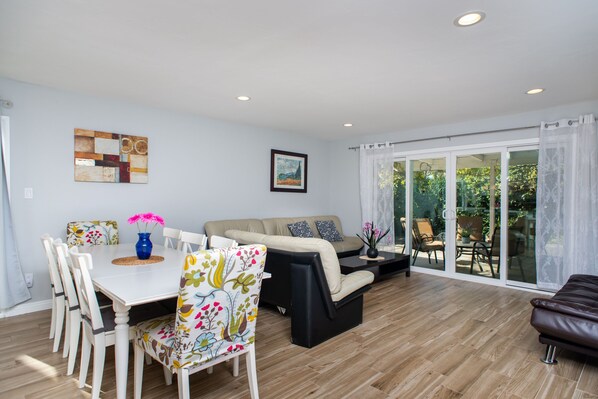 This was a nice place to stay for our beach holiday. The price was affordable and it was just a few minutes from the freeway and La Jolla Beach. It was also close to many other beaches and places in San Diego. We had 10 of us and there was plenty of room to relax when we were all there. The secluded back patio was nice. Not that it was a big deal, but it would have been nice to know there was an attached studio apartment when booking. We definitely would book this place again.