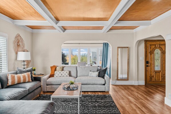 This is a newly remodeled craftsman, centrally located 4 bedroom and 2.5 bathroom unit with living room, kitchen, parking, and a large backyard. Perfect setup for large groups who want a stylish yet historic home.