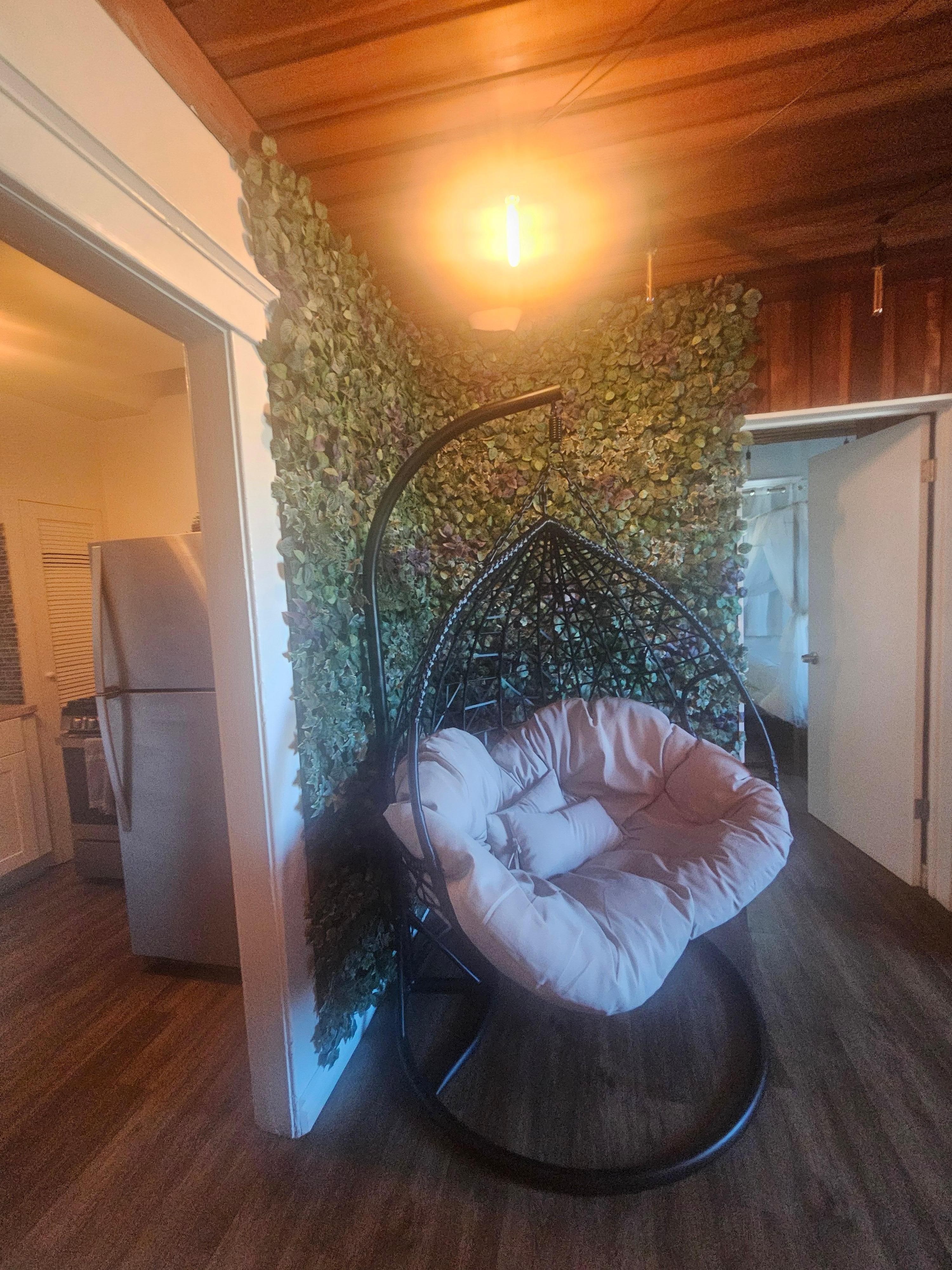 Welcome to "Sawadee," where the essence of Thai hospitality awaits you in this charming Mission Beach condo. Recently renovated in 2022, every detail exudes luxury and comfort. Drift into dreams on the canopy bed frame paired with a Casper mattress in the bedroom. The kitchen is fully equipped with custom utensils, pots, pans, and dinnerware for your convenience. Step into the living room, where vintage spider lighting and an electric fireplace create a cozy ambiance. Relax on the comfy sectional couch or unwind in the 2-person hanging chair while enjoying entertainment on the 70” Samsung TV. Authentic fixtures and tasteful decor enhance the Thai-inspired experience.