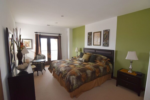 Make your way up the eclectic spiral stairs to the second floor and here you will find a second bedroom and the master bedroom. The second bedroom has a double and a twin bed plus private bathroom. This bathroom has a sink plus shower tub combo. The master bedroom is the most grandiose of all the bedrooms. Starting with its size it is the biggest, has a king size bed and has a balcony overlooking the 18-hole golf course plus beach views. The master bathroom will not disappoint you either. There is a his-and-her sink, shower with crystal like glass door and a tub. A walk in closet is also part of the master bedroom features that allows you to store your clothes without being crumpled.