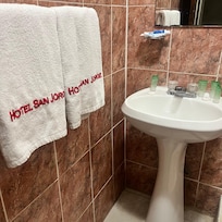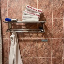 La stanza è molto piccola e il bagno credo sia stato ricavato successivamente. C'è solo un interruttore che accende sia la luce della stanza che la luce del bagno e due prese di corrente a 2 metri d'altezza. L'aria del condizionatore arriva direttamente in faccia, cosa poco igienica e poco piacevole. La cassaforte non si poteva usare e c'era un unico piccolo ripiano su cui appoggiare qualcosa ma era rotto. Non c'è un armadio e ci sono solo due appendiabiti in bagno. La stanza era pulita grossolanamente. Lati positivi : le lenzuola erano pulite anche se non stirate e gli asciugamani profumati. Personale molto cordiale e disponibile e caffè disponibile gratuitamente dalle 7 alle 11 del mattino. Buona posizione.