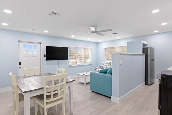 Guests enjoy free access to our Gigabit mesh internet service, bikes, beach gear, grill and cooking area as well as a communal laundry room. Experience beautiful, lush grounds with colorful vegetation and multiple outdoor private seating areas, including a Tiki hut, hammock, and dining tables with large shades.