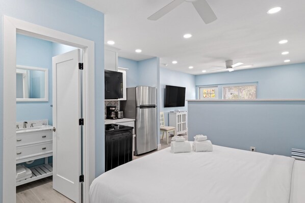 Welcome to Captain Ed's, a beautifully appointed studio cottage located in the newly renovated, Palmview Inn! The cottage features a king bed, a sleeper sofa, a full bathroom and a comprehensive kitchenette featuring a fully equipped inventory. Festooned with gorgeous palm trees and an ever present ocean breeze, Palmview Inn has been the choice of many travelers year after year. Close to beaches, dining and shopping, this property boasts one of the best locations on the island.