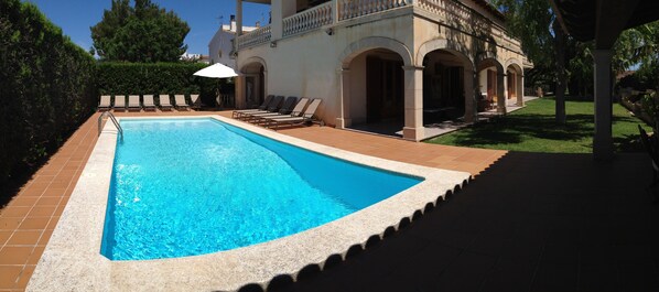 All'esterno si trovano la veranda, il giardino, la piscina, l'area barbecue completamente attrezzata e il bagno con doccia.