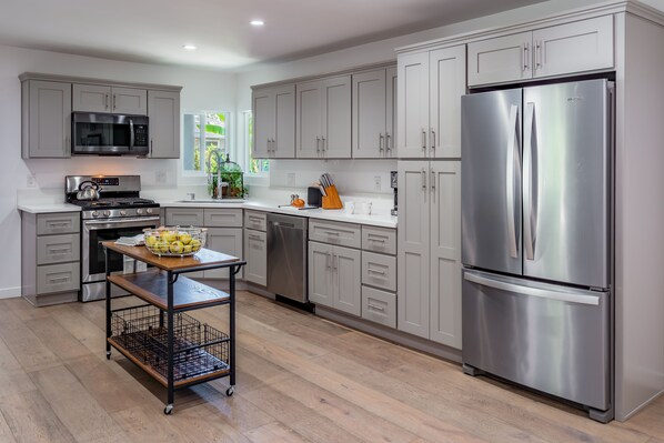 This 3 Bedroom, 2 Bathroom beachy home has been fully renovated with classic and tasteful finishes. You’ll enjoy 1,100 square feet of a large spacious Kitchen that leads into the Dining Area. Each Bedroom is fully equipped with luxury linens to accommodate ultimate relaxation. The Bathrooms have also been recently upgraded to spa-like quality. The comfortable Living Room is perfect for afternoon naps featuring a sliding door that leads into the backyard. A stone patio offers additional dining space to smell the sea air and dine under the stars.