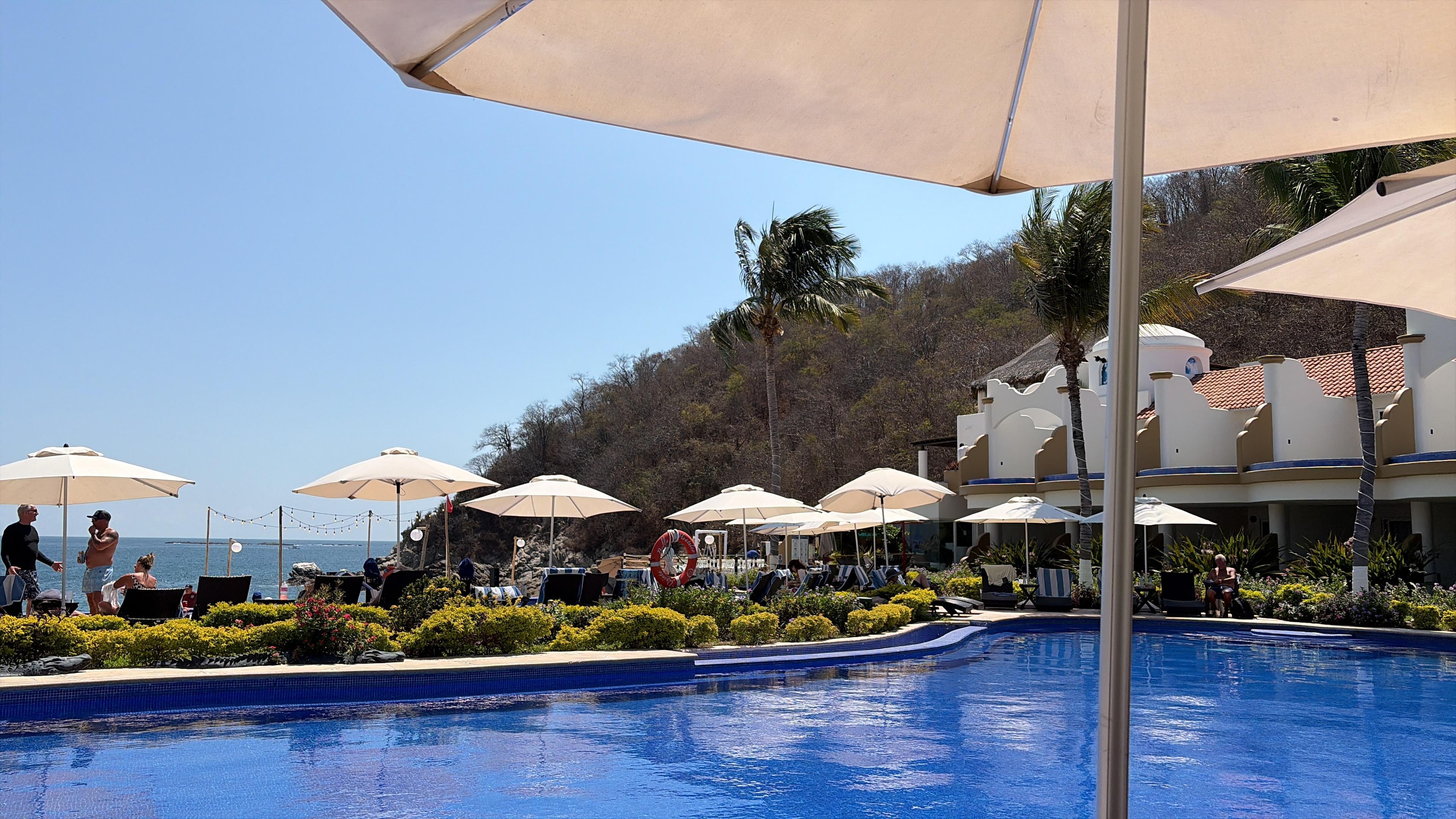 The location is spectacular. A very relax vibe Less than 100 m from beach to pool . Waves are a bit strong yet swimmable. 20 minutes walk to La Crucecita. Our room (king deluxe on 2nd floor) had a perfect balcony with a little pool where we can see the sunrise every morning . The restaurants at the hotel are gourmet . We will be back