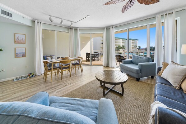 You'll spend all your time on the oversized balcony that overlooks the large resort style pool. When the sun comes up, head out to lounge by the cool water of the resort pool, or make your way to the beach nearby for a day of tanning with a book in hand.