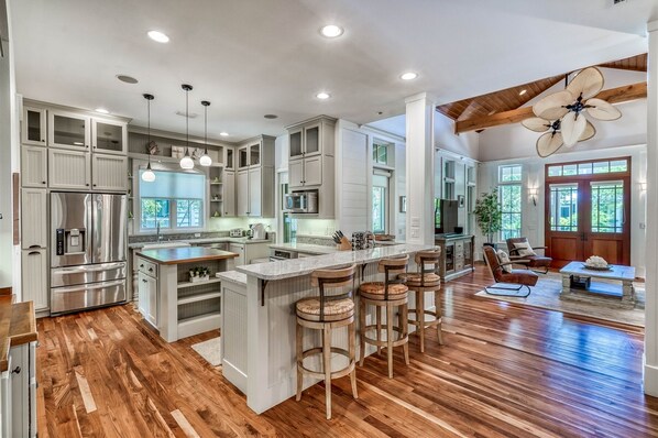 Quintessenziali interni bianchi luminosi combinati con lussuosi arredi curati professionalmente rendono questa casa la migliore vacanza sulla costa del Golfo. Un ampio portico anteriore offre un caloroso benvenuto agli ospiti in questa casa. La zona giorno principale presenta una pianta a pianta aperta con un ampio flusso tra la cucina, il soggiorno e la sala da pranzo dello chef. Questo piano comprende anche la camera da letto principale con un letto king size e un bagno privato con doccia, oltre a un altro bagno completo per gli ospiti e ampi portici con schermo.