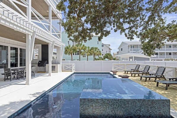 This house couldn't have been any nicer! Everything was super clean and there was plenty of space for all of our guests! Another huge plus was having a bathroom for every bedroom. That made it easy for everyone to get ready and have some privacy. The pool and hot tub was a super bonus as well! We have stayed in several places in 30A and this is the nicest one yet! Definitely recommend this place and we look forward to staying here again next year!