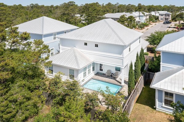 Enjoy a luxury vacation to Santa Rosa Beach! Stella Maris is a stately two-level home near Gulf Place on Scenic Highway 30A. Its close proximity to the beach and Gulf Place Town Center places guests conveniently near fun coastal activities and entertainment. The home has a 16.5'x10.5' private pool, spacious interiors, and comfortable living and sleeping accommodations. It has four bedrooms and four and a half baths. In total, this beach vacation home can entertain up to ten guests—perfect for a family vacation or getaway with friends.