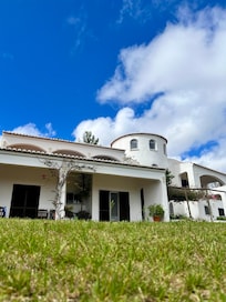 Stunning villa set amongst beautiful traditional Portuguese countryside, high enough to have an amazing view out to the sea in the distance. Instructions were clear and helpful before arrival and the villa is well catered for every need. Extremely comfortable for a large family. The kitchen is well equipped and the lounge / study area is great to chill in the evenings. We enjoyed eating outside on the veranda and the kids loved the take tennis! The pool is beautiful, well kept and has sun loungers and seats for everyone in our party, with the added benefit of an additional kitchen and toilet nearby, to save going back up the villa. The grounds and gardens are very pretty, adding to the beauty of the villa and making it a little sanctuary in the quiet hillside.Easy 20 minute drive from Faro Airport and close by to Loule, Villamora, Sao Bras and Albufeira - whether you’re looking for coastline and inland adventures. Highly recommend - excellent!