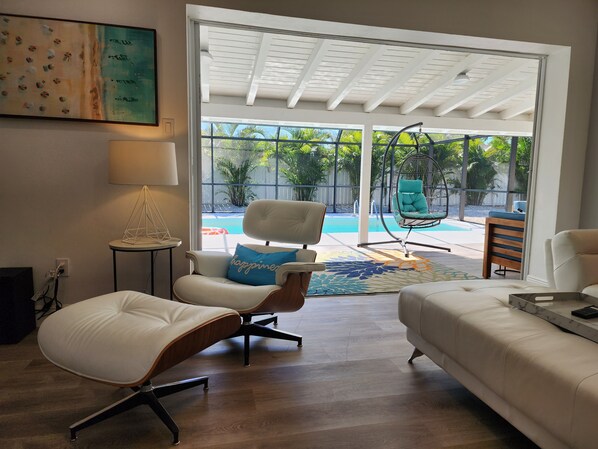 From the moment we walked through the front door, I could already tell this would be one of the most relaxing vacations I’ve had in a long time. This beautiful mid-century modern is casual, cozy, and as inviting as they come. This vacation home had everything we could have possibly needed for a week away, from bath essentials to paper towels to dishwashing detergent. Plenty of towels, washcloths, and beach towels. We loved not having to bring beach chairs or umbrellas. Thank you for providing all these items for your guests! The only thing you need to bring is yourself. So convenient to great restaurants and beaches, about a 15 minute drive to our favorite, Lido Beach, and the best part was coming home to the private, screened pool. Our fur baby loved lounging in the shade while we floated the afternoons away! I can’t recommend this home enough and hope our family has the opportunity to stay again!