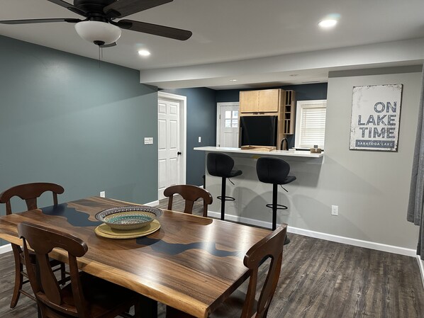 1. Host was in communication throughout booking till end of stay. 2. Host let us check in early, im sure tough to guarantee all the time, but with 2x kids and 4 hour drive this was huge. 3. Property was as advertised I would stay the living dining area open concept very clean modern all updated 4. This location is lake living in a perfectly central located area you can take Route 9 along lake saratoga for 15 min up to the track or go 1/2 down the road to Browns beach for swimming and ice cream for the kids 5. This was perfect for a long weekend family get away and we thank the host for the efforts and letting us stay on the property 3. p