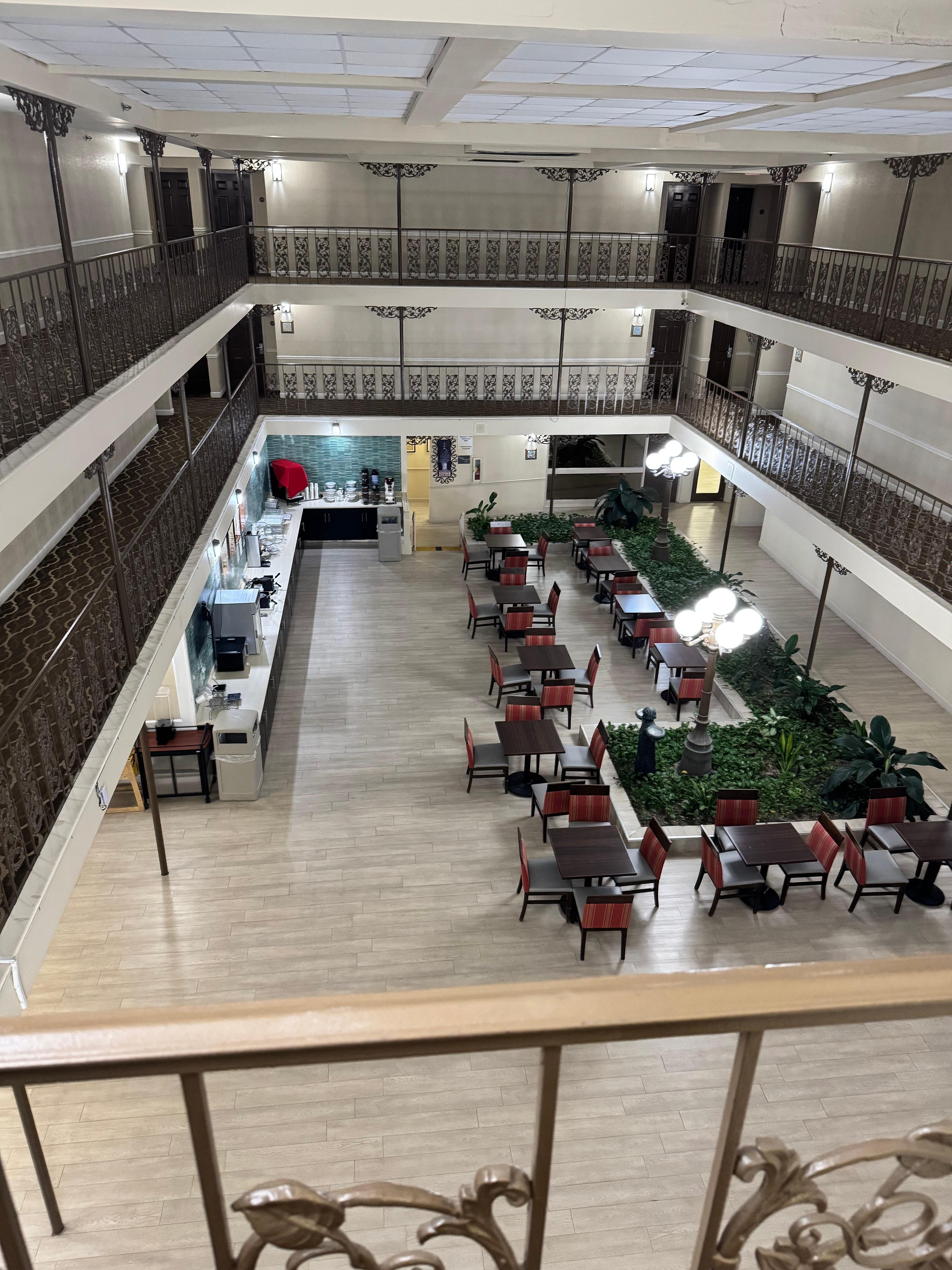Interior rooms smell of smoke, clearly 30 yr old hotel. Needs massive renovations on interior. Elevator is not functional.