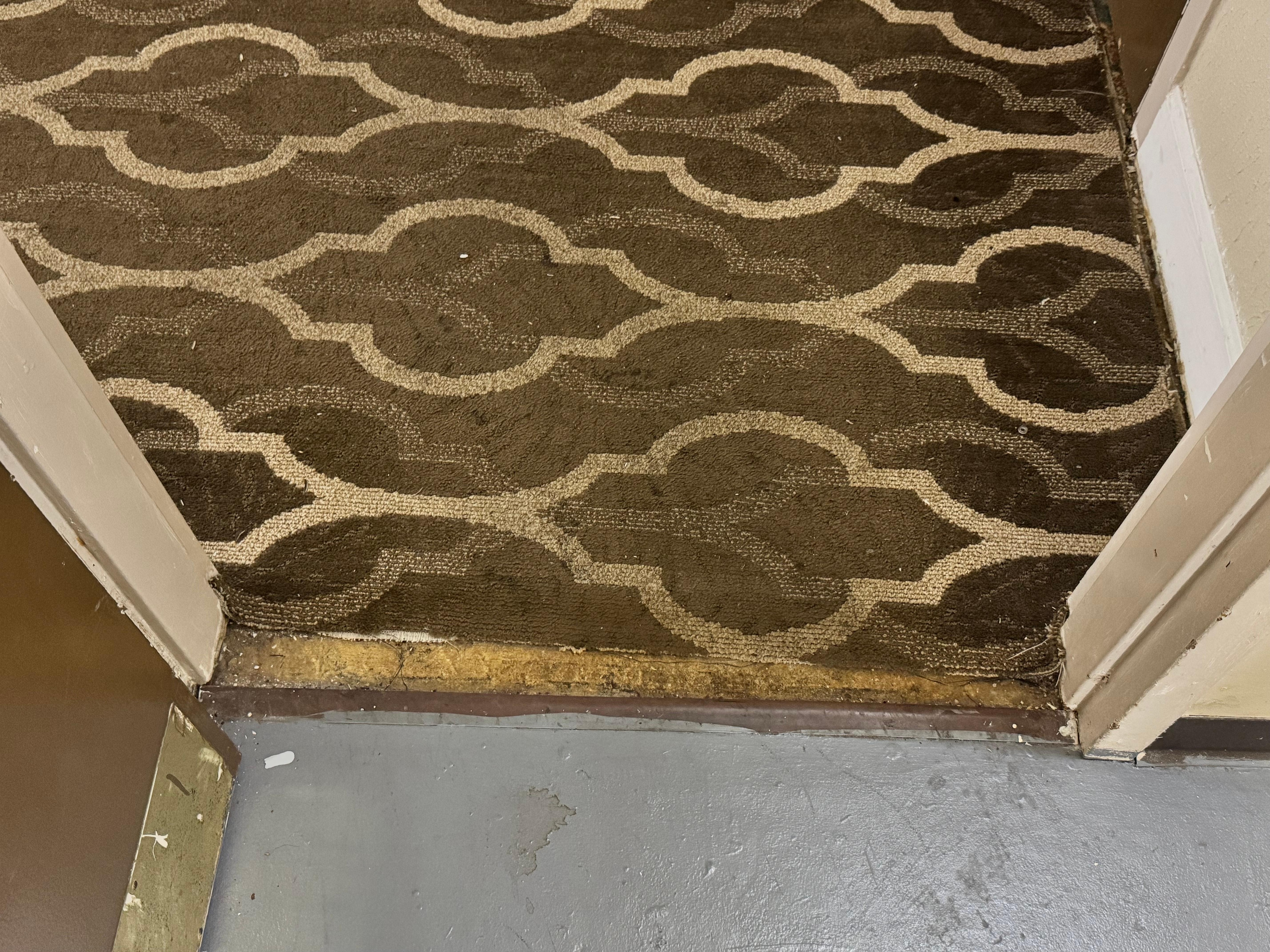 The room had a musty odor as we entered. Carpet was old and wrinkled and missing in some places. Furniture was poor quality. One of the drawers was broken.