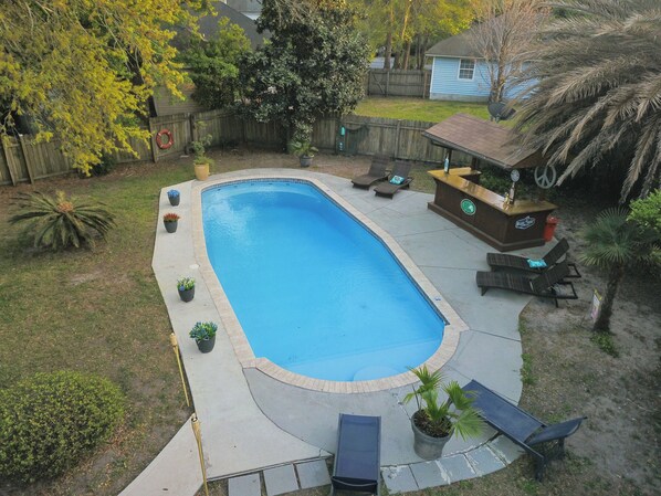 Highlights: -Private oversized 38ft resort-style pool with sun loungers -Poolside tiki bar oasis -Island life: your stay is on Whitemarsh Island - FULLY fenced backyard; Pets allowed! -Outdoor grilling -Espresso bar with complementary syrup station AND in-house espresso -2 king beds, 4 twin XLs, 2 full bathrooms - Cozy living room fireplace -65" living room TV with smart TV's in all bedrooms -Next to Whitemarsh Island preserve and its biking / walking trails -Luxury designer interior