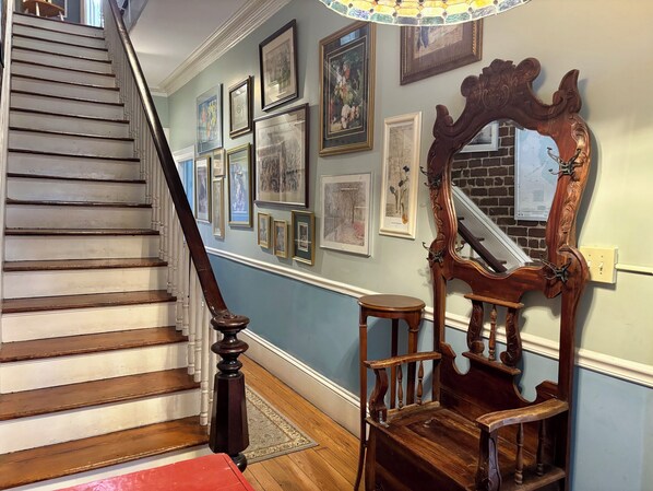 Dal momento in cui metti piede in questa splendida casa a schiera Savannah Brick ti sentirai come un autentico nativo di Savannah. Questa casa è pulita e lucidata per gli ospiti in vacanza che amano il fascino antico ma desiderano la pulizia di un hotel. Arredato con comodi mobili contemporanei insieme a splendidi oggetti d'antiquariato e decorato con autentici cimeli e opere d'arte di Savannah, tra cui informazioni storiche su questa stessa casa.