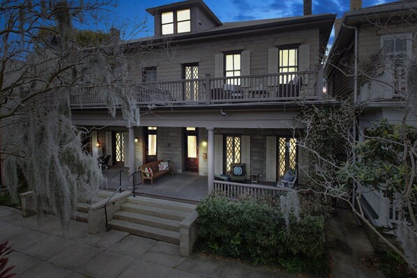 Un edificio rinnovato nel centro storico di Savannah! Questa proprietà è stato completamente aggiornato con belle finiture di fascia alta per il vostro comfort e divertimento. I proprietari hanno conservato elementi storici con successo in tutto, come mantelli e modanature che sono particolarmente ornato e memorabile. Sedersi sulla veranda e salutare i carrelli del tour o ingraziarsi il portico posteriore privata con un buon libro.