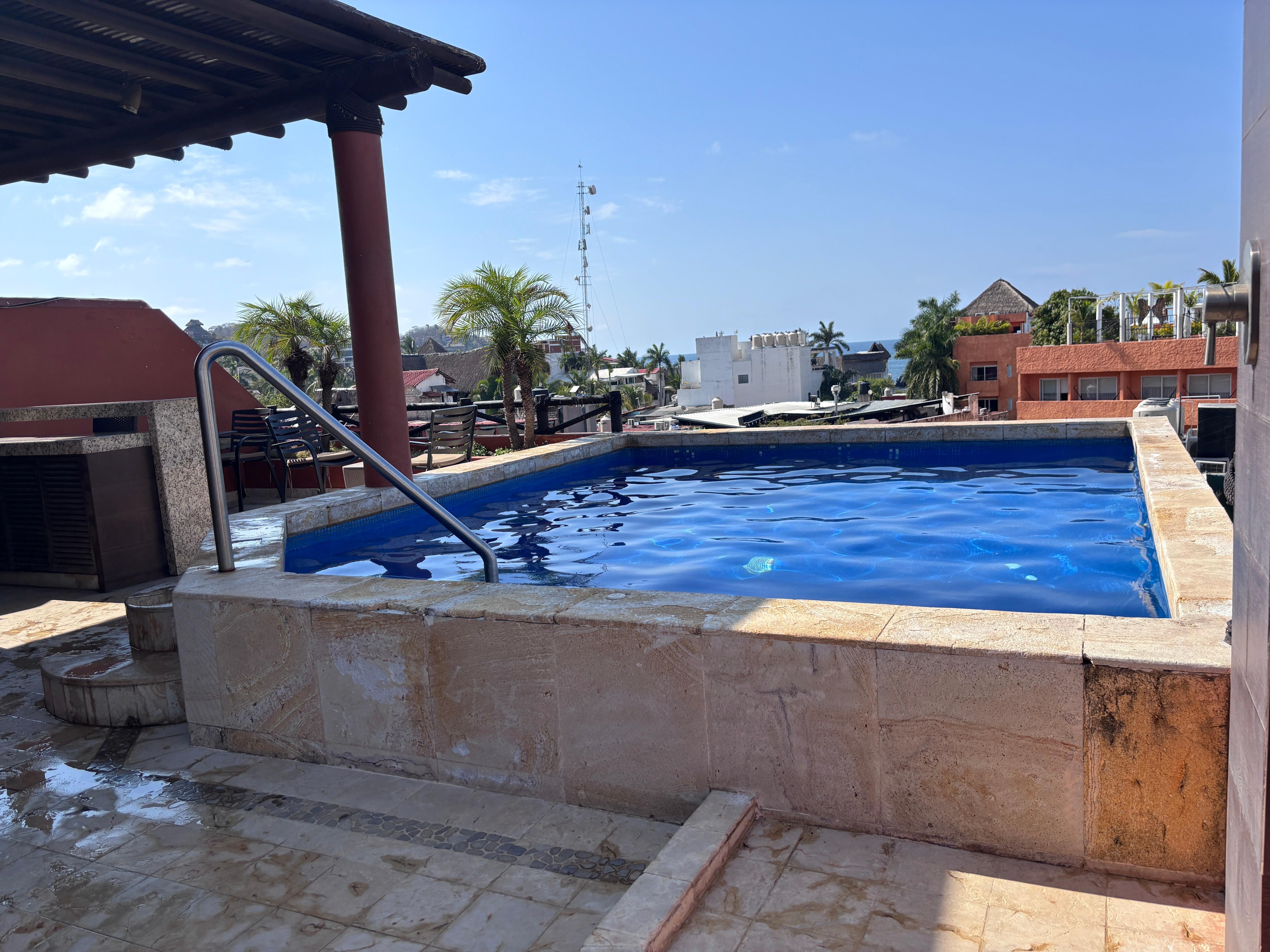 Central location and close to restaurants and bars. If you like loud music and bands playing most nights until 3am, this is your place. Our kids didn’t find the sofa bed that comfortable but it was good enough for 3 nights. We enjoyed the rooftop pool and balcony. The only complaint I have is every time someone showers the bathroom floor would be super wet. The shower door wasn’t well designed. We would hang dry the bath mat every day. Unfortunately the drain in the bathroom was releasing bad odours during our stay. Not sure if that’s common. The TV in the main bedroom doesn’t work but we were able to log into Netflix in the living room. Overall the place is cozy and I like the convenience location. We didn’t cook there so no comment on that. The freezer works very well. To find the entrance of the building, look for Mr. Munchi’s breakfast.