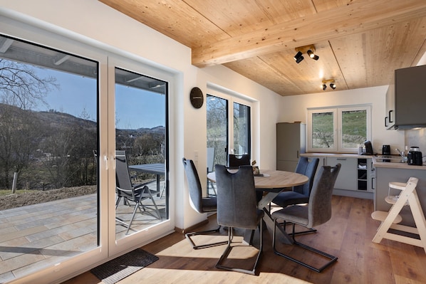 Con vista sulle montagne, l'appartamento Fattoria a Schmallenberg colpisce per l'accesso senza barriere e gli interni moderni. L'alloggio di 85 m² dispone di un soggiorno, una cucina, tre camere da letto e un bagno, ospitando fino a cinque persone. Troverete anche Wi-Fi ad alta velocità (adatto per videochiamate), una smart TV con servizi streaming, libri e giochi per bambini. Sono disponibili un lettino per bambini e un seggiolone. L'area esterna privata comprende una terrazza aperta e un barbecue. In questo appartamento sono ammessi cani, massimo due.
