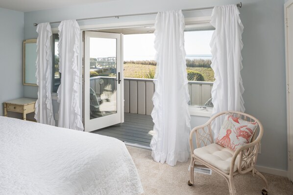 3724 Seabrook Island comfortably sleeps 10 guests in 4 bedrooms. You will love the two master suites, each with quality king bedding, a private bath and oceanfront deck. The first king master suite is downstairs on the ocean side, the second king master suite is upstairs on the oceanfront with spectacular views. Bedrooms 3 and 4 are also upstairs on the ocean side with oceanfront decks, Bedroom 3 has two bunk beds and Bedroom 4 has two twins, sharing an updated bathroom with tub/shower. All baths are updated. Our beach house is beautifully, comfortably, adorably furnished.