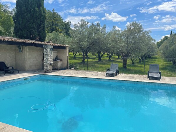 Maison joliment rénovée avec une vue dégagée et une magnifique piscine