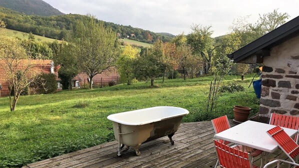All'esterno una terrazza vi permetterà di godere della vista libera dei prati dei Vosgi.