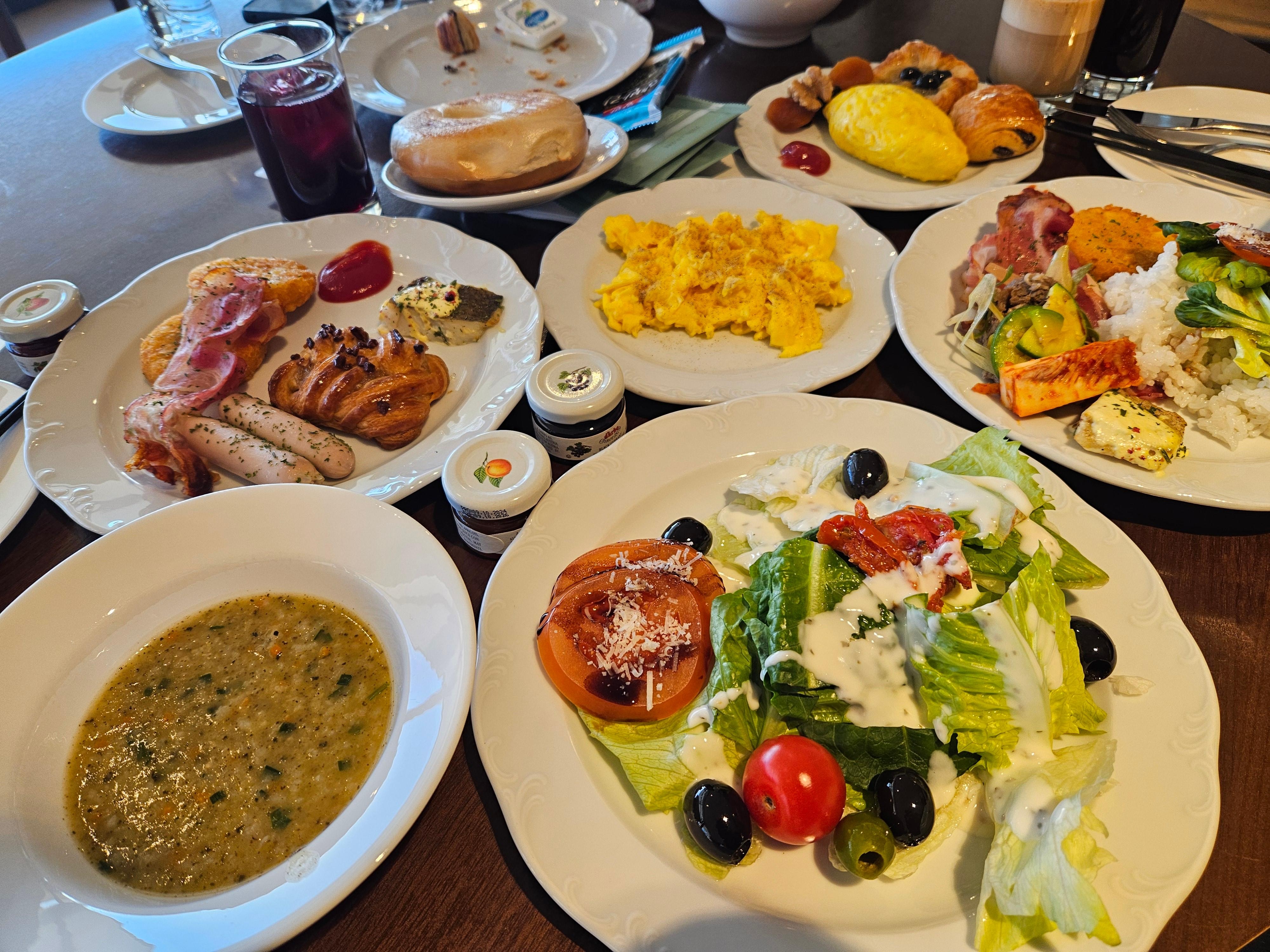 Breakfast on the upper floor had a beautiful view and great atmosphere. Most of the food was good, though one fish dish was just okay. The coffee machine was also a bit complicated to use and could be more user-friendly.