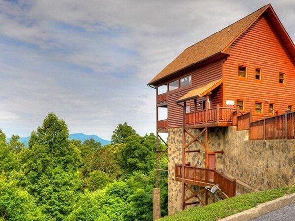 A Touch of Class è una cabina con 2 camere da letto a pochi minuti da Pigeon Forge. La camera da letto principale si trova al piano inferiore e il secondo letto si trova al piano superiore nella zona soppalcata, entrambi dotati di letti king size. Il soggiorno ha anche un divano letto perfetto per i bambini! Questa cabina offre sia una vasca idromassaggio interna e una vasca idromassaggio all'aperto, una cucina completamente attrezzata e mobili in legno Aspen. Questa cabina è di circa 1.404 piedi quadrati. Potrai rilassarti davanti ai caminetti elettrici e goderti il film che preferisci con il lettore DVD e le TV a schermo piatto. Dal ponte, goditi una vista mozzafiato di Pigeon Forge mentre sei seduto sulle sedie a dondolo. Per il vostro divertimento, questa cabina è dotata di un tavolo da biliardo, un tavolo da air hockey e un classico sistema arcade video. Il resort dispone anche di una piscina all'aperto, un parco giochi e un padiglione in cui le strade sono salate e arate durante i mesi invernali, quindi la proprietà è accessibile tutto l'anno.