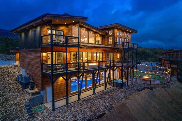 Wake up to sweeping mountain vistas in this luxury 5-bedroom lodge. Relax in the private hot tub, gather by the firepit and share meals straight from the BBQ grill.