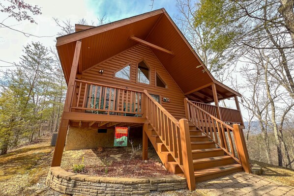 Peaceful Haven ha un soggiorno con camino a legna e divano letto, la cucina è completamente attrezzata e ha una bella sala da pranzo. C'è una camera da letto al piano principale con un letto matrimoniale e bagno completo. La seconda camera da letto si trova nel soppalco al piano superiore con un letto king size, vasca idromassaggio e bagno privato completo. Il tavolo da biliardo si trova nel loft. Il ponte posteriore privato ha una griglia a carbone, vasca idromassaggio, sedie a dondolo e una panca altalena. WiFi gratuito, TV via cavo e lettori DVD.